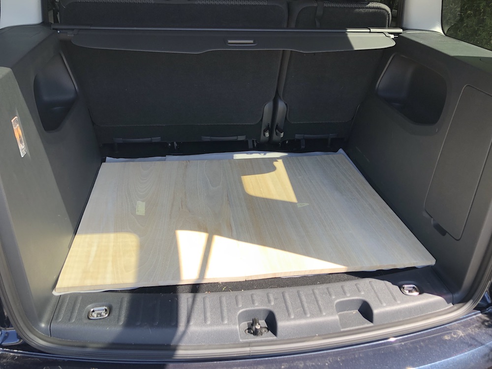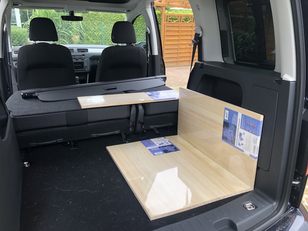 Wer nun meint, damit sei ja das Bettgerüst fertig, der sei gewarnt. Leider müssen wir uns noch das andere Ende, die Lücke zwischen umgeklappter Rücksitzbank und Vordersitzen, anschauen und füllen – dazu der nächste Post: Verlängerung des Betts.