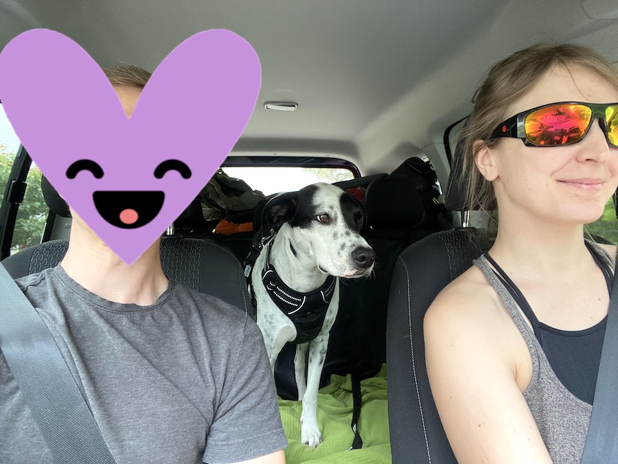 Damit Anton es auf unserer Reise maximal bequem hat, packten wir den Raum zwischen Rücksitzbank und Vordersitzen so, dass eine luxuriöse Liegefläche entsteht (da hätte ich gern selbst während der Fahrt gelegen).