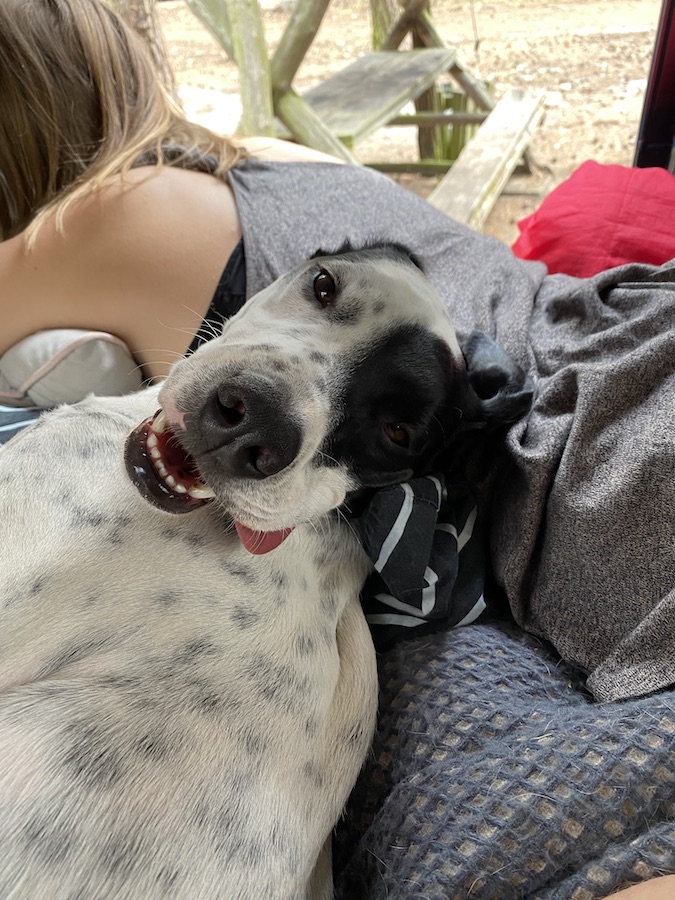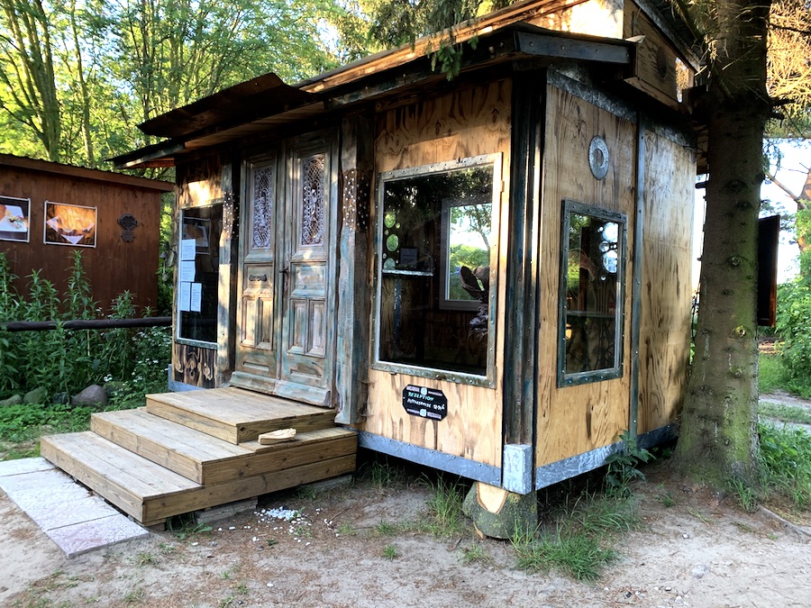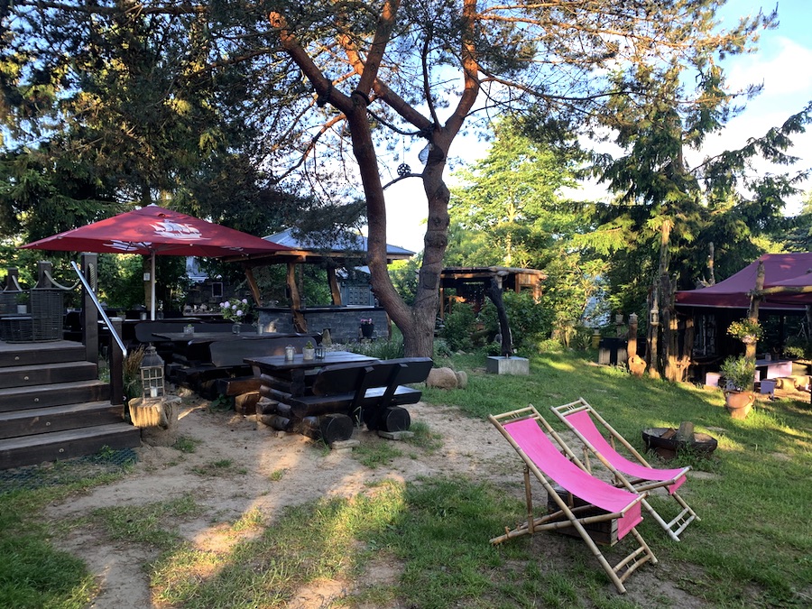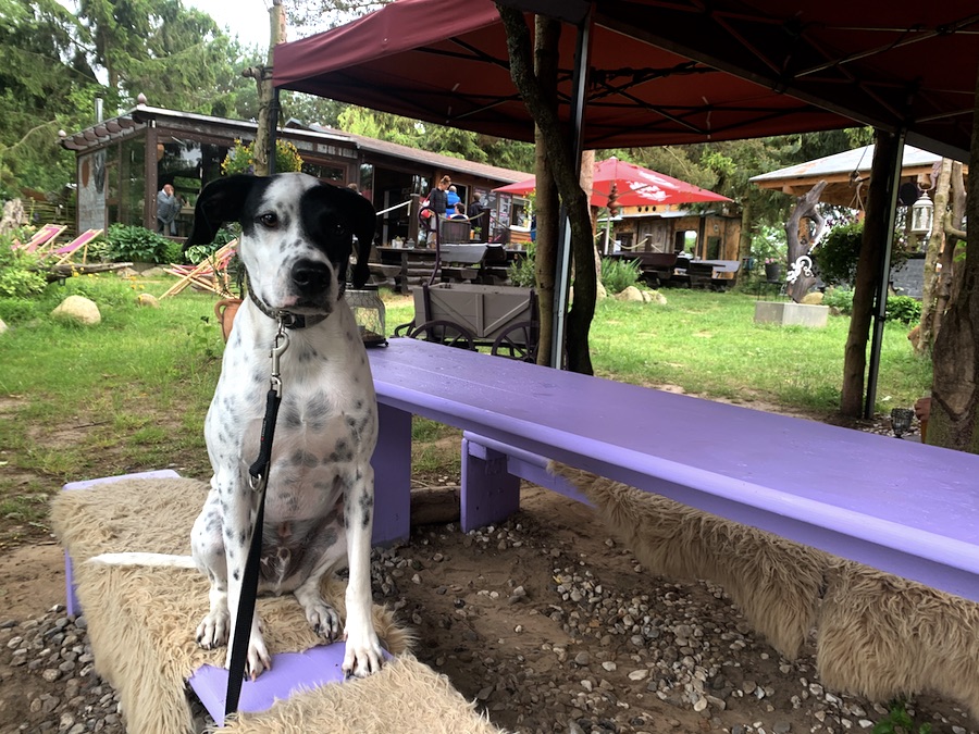 So startete unser Urlaub schon sehr aufregend und der erste Campingplatz auf Usedom entpuppte sich auch noch als wahrer Schatz, den ich hier mit euch teile! Allein die Fahrt dahin, lässt niemals vermuten, was ihr dann entdecken werdet. Nandalee-Camping liegt nicht direkt an der Küste und macht es daher auch attraktiv, weil da nicht die typischen Strandurlauber herumlungern. Das Camp erinnerte mich persönlich an ein Surfcamp, wo es im Zentrum einen Community-Bereich mit Musik gibt, begrüßt wurden wir vom Besitzer freundlich aber typisch berlinerisch, gastronomisch konnten wir die großartigsten veganen (!!!) Gerichte genießen (es gibt auch karnivor, aber veganes Essen findet man auf Campingplätzen an der Ostsee halt seltener…), die Rezeption, Duschen und Toiletten erinnerten ein bisschen an Peter Pans Niemalsland – und das wichtigste, wir hatten hier überhaupt keine Probleme mit Hund, solange wir uns an allgemeine Anstandsregeln hielten – sofern Anton nicht streunerte, hatte auch niemand was dagegen, dass wir ihn ohne Leine auf der Parzelle laufen ließen.