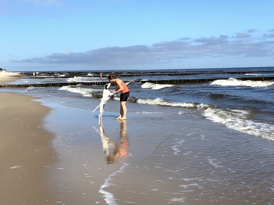 Ab und zu schlenderten wir nach Zinnowitz, genossen die Meeresbriese und die Sonnenstrahlen. Leider waren die anderen Hunde meistens an der Leine oder nicht gut sozialisiert. Als endlich dann auch mal ein würdiger Spielpartner für Anton entlang gelaufen kam, rundete das den Urlaub ab. Doch so langsam zeigte uns auch Anton, dass der Strandurlaub nun mal enden darf. Zum Wandern gab es auf Usedom leider nicht viel, da sich das meistens mit dem Usedomer Radweg kreuzte, der auch gut genutzt wurde.