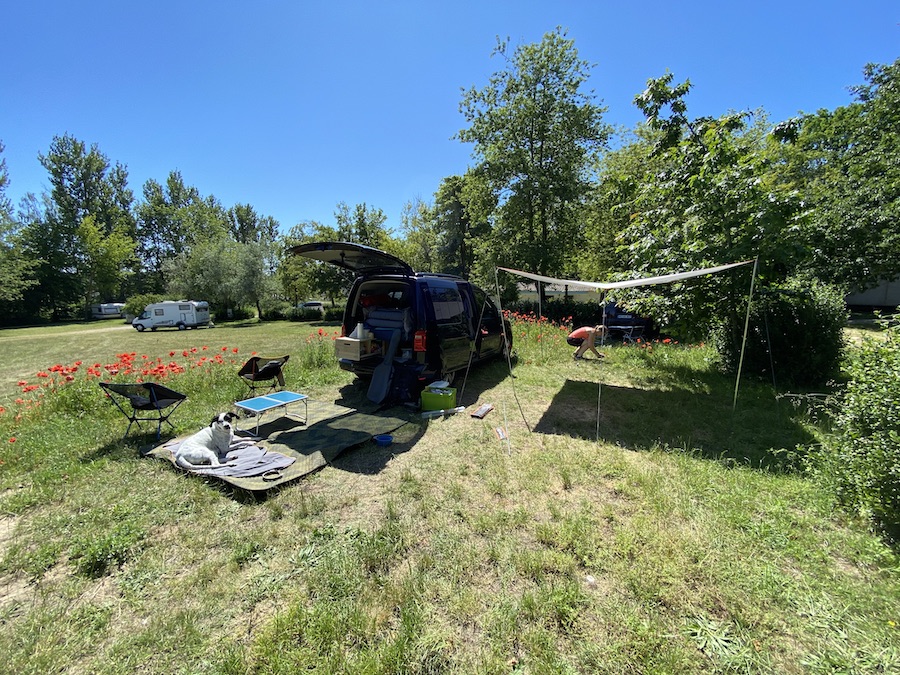 Selbst Anton sah man die Freude beim Aufenthalt direkt an. Zwar sollen hier Hunde auch an die Leine, aber der Platzwart grüßte uns immer fröhlich und sagte nie etwas dagegen, wenn Anton an unserem Platz frei umher lief.