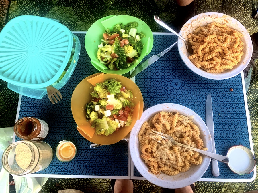 Auf dem Campingplatz blieben wir eine knappe Woche, weil wir uns so wohl fühlten und unsere Ruhe hatten. Wir mussten nicht ein einziges Mal einkaufen fahren (nächster Supermarkt wäre 15 Minuten mit dem Auto entfernt gewesen), denn unser Proviant reichte gut aus und die Rezeption hatte genau die Sachen, die uns fehlten. Somit konnten wir die Tage vollends entspannen und einfach das machen, wonach uns war, lesen, schlafen, spazieren gehen, Gitarre spielen, kochen und backen – kulinarisch kamen wir keinesfalls zu kurz!