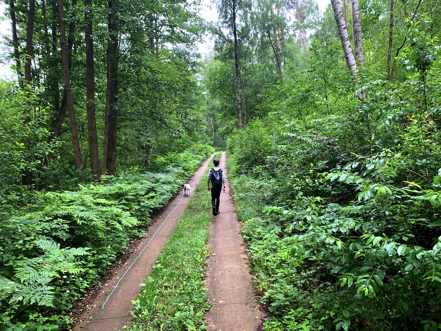 Zusammen gingen wir etwas spazieren, Anton fühlte sich sofort wohl und versuchte, Zecken zu sammeln – erfolglos, keine blieb im hohen Gras an ihm hängen, wir wissen bis heute nicht warum.